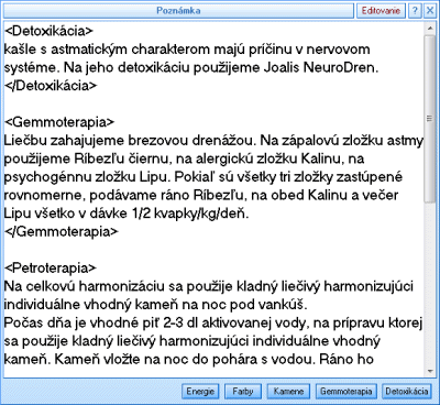 pravej dolnej časti sa zobrazia tlačidlá pre vkladanie terapii - detoxikácia,