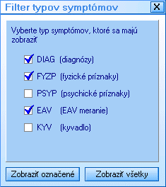 program zobrazovať / pracovať len s vybraným typom symptómov. Pre
